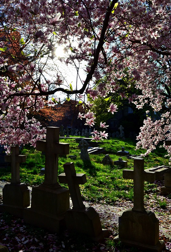 I love these pics! I can’t decide if I like the cherry blossoms or the fact that they were taken in a cemetery better 😉