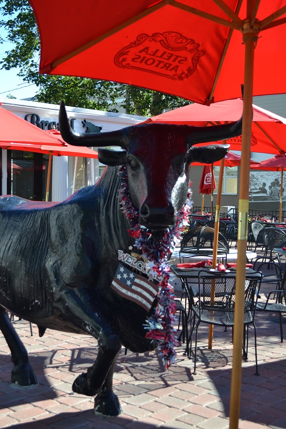 A statue adorning a restaurant along Main Street.
