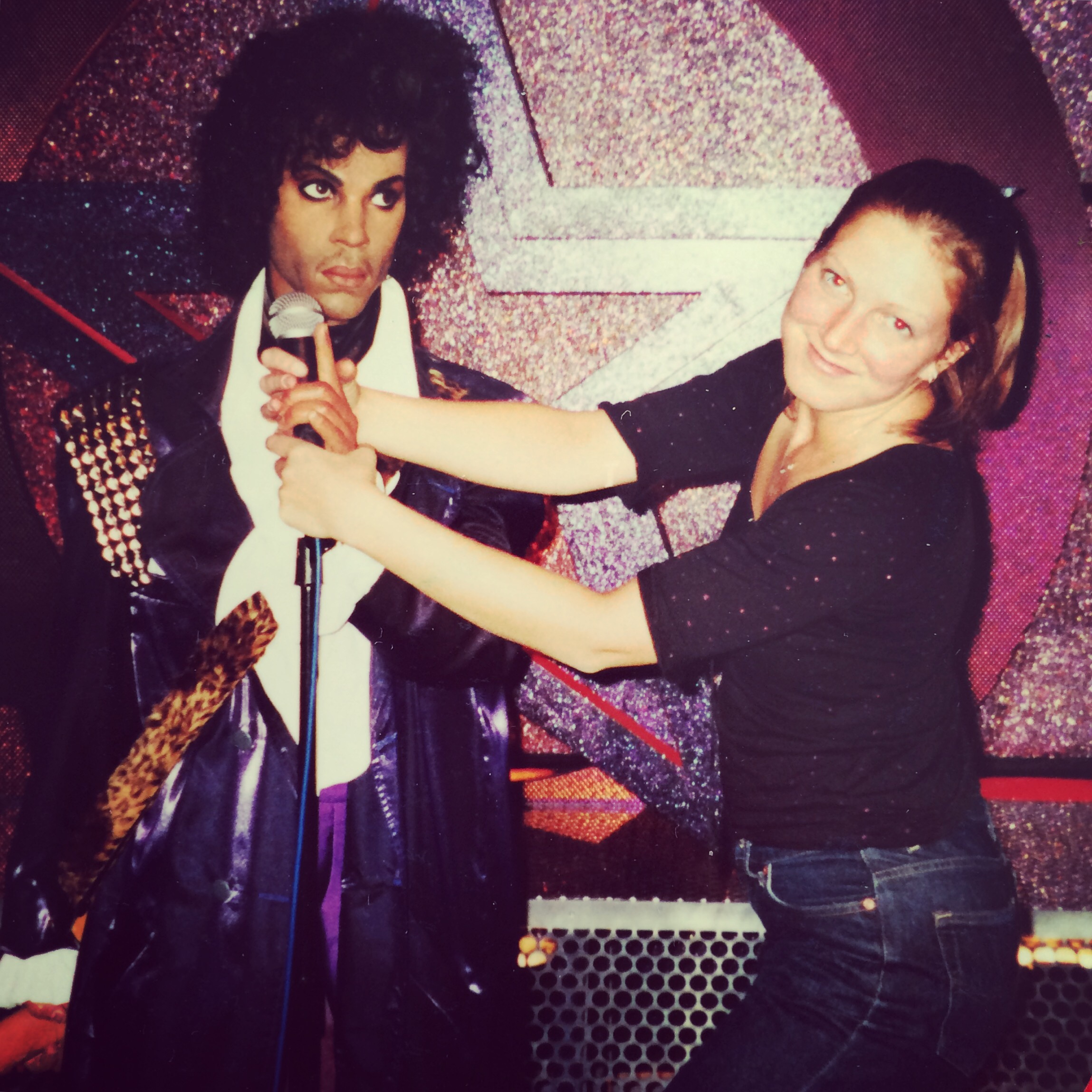 Below the Baltimore images areΒ a fewΒ bodhisattva images I’ve recently encountered, and other cool filesΒ I randomly pulled from my iPhone. I foundΒ this old photo, circaΒ JanuaryΒ 2002, where I’m picturedΒ with a wax replica of His Purple Majesty — may heΒ rest in peace.